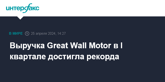 Выручка Great Wall Motor в I квартале достигла рекорда