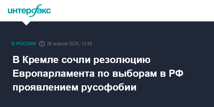 В Кремле сочли резолюцию Европарламента по выборам в РФ проявлением русофобии