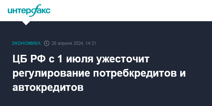 ЦБ РФ с 1 июля ужесточит регулирование потребкредитов и автокредитов