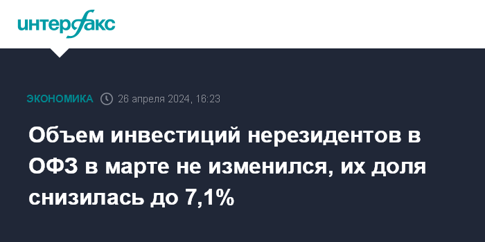 Объем инвестиций нерезидентов в ОФЗ в марте не изменился, их доля снизилась до 7,1%