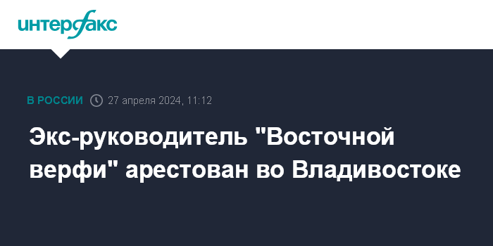 Экс-руководитель "Восточной верфи" арестован во Владивостоке