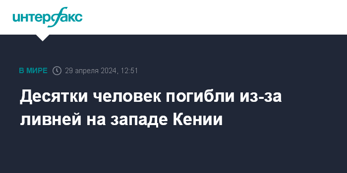 Москва. 29 апреля. INTERFAX.RU - Не менее сорока человек погибли в наводнениях, вызванных проливными дождями и последовавшим за ними разливом рек на западе Кении. Еще более ста человек доставлены в больницы.