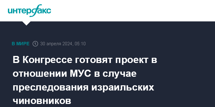 Москва. 30 апреля. INTERFAX.RU - Члены Конгресса США от обеих партий предупредили Международный уголовный суд (МУС) о том, что выдача ордеров на арест высокопоставленных израильских чиновников повлечет за собой ответные меры со стороны Вашингтона, сообщает портал Axios.