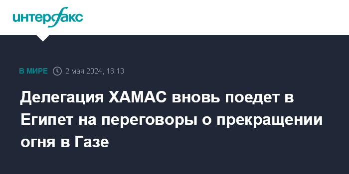Делегация ХАМАС вновь поедет в Египет на переговоры о прекращении огня в Газе