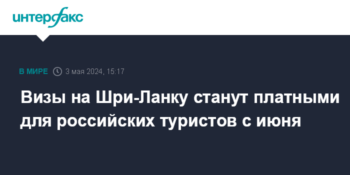 Визы на Шри-Ланку станут платными для российских туристов с июня