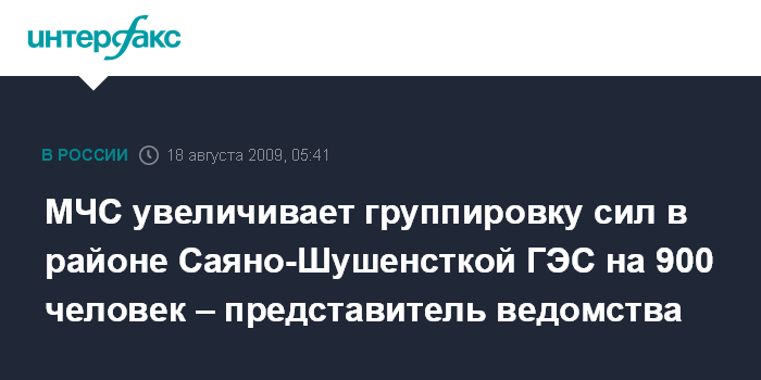 Саяногорск. 18 август. ИНТЕРФАКС - МЧС России усиливает группировку сил и средств для ликвидации последствий аварии на Саяно-Шушенской ГЭС