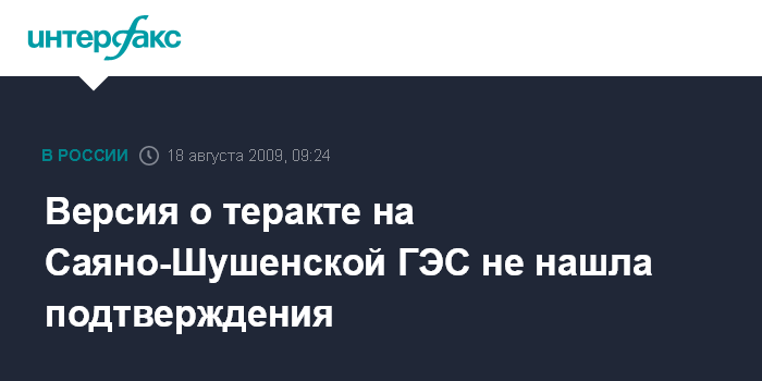 Москва. 18 августа. INTERFAX.RU - Следствие рассматривает различные версии трагедии на Саяно-Шушенской ГЭС, но версия о теракте не подтвердилась, заявляют в СКП России.