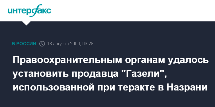 Москва. 18 августа. INTERFAX.RU - Личность хозяина, продавшего "Газель" боевикам, которые начинили ее взрывчаткой, а затем взорвали возле здания ГУВД Назрани, удалось установить.