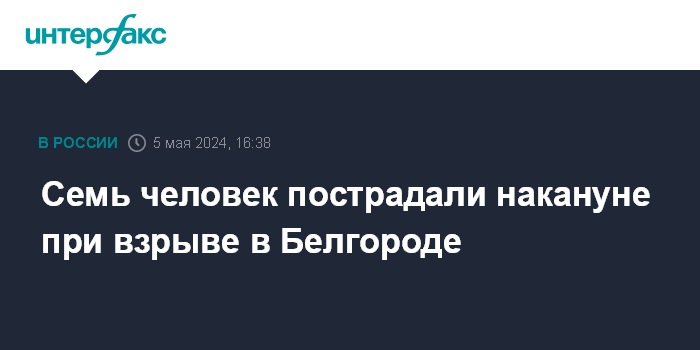 "В городе Белгороде в результате взрыва пострадали семь человек, в том числе двое детей", - написал он в своем телеграм-канале в воскресенье.