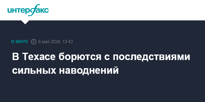 Москва. 6 мая. INTERFAX.RU - В штате Техас продолжаются сильные наводнения, приведшие к эвакуации многих граждан и закрытию школ и автодорог, передает Associated Press.