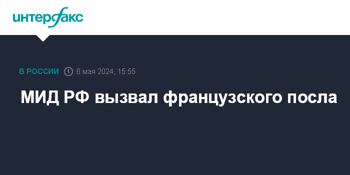 Москва. 6 мая. INTERFAX.RU - В понедельник в МИД России был вызван посол Франции Пьер Леви, сообщила в своем телеграм-канале официальный представитель МИД РФ Мария Захарова.