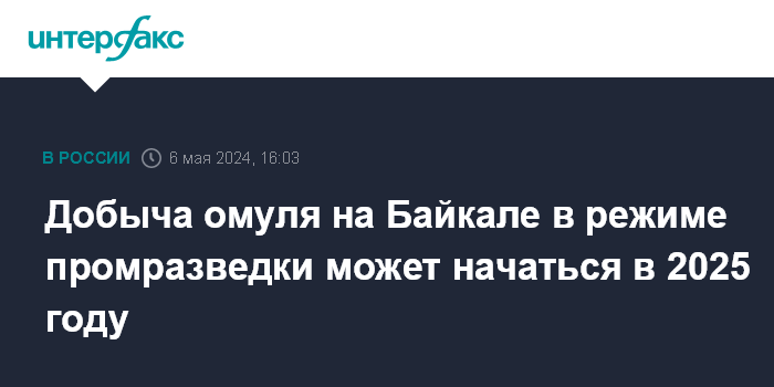 Москва. 6 мая. INTERFAX.RU - Добыча байкальского омуля, промышленный лов которого запрещен с 2017 года, может возобновиться в 2025 году в режиме промразведки, сообщил министр сельского хозяйства Бурятии Галсан Дареев.