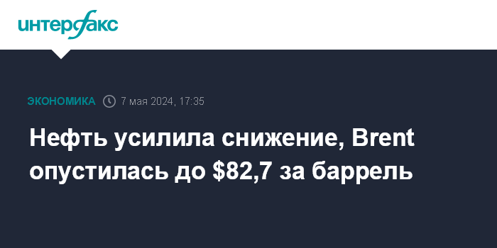 Нефть усилила снижение, Brent опустилась до $82,7 за баррель
