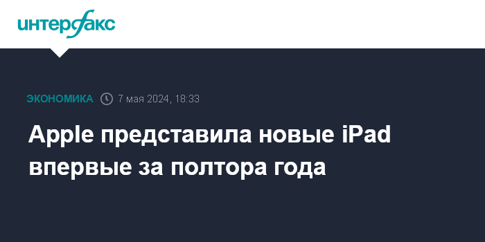 Москва. 7 мая. INTERFAX.RU - Apple Inc. во вторник провела презентацию новых планшетов iPad, не получавших обновления модельного ряда с октября 2022 года.