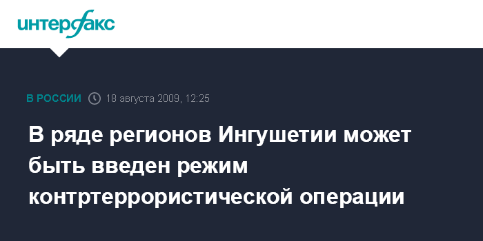В ряде регионов Ингушетии может быть введен режим контртеррористической операции
