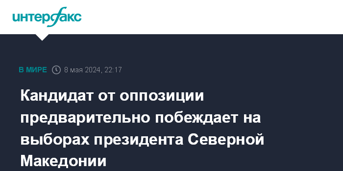 Кандидат от оппозиции предварительно побеждает на выборах президента Северной Македонии