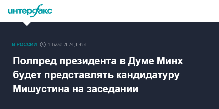 Полпред президента в Думе Минх будет представлять кандидатуру Мишустина на заседании