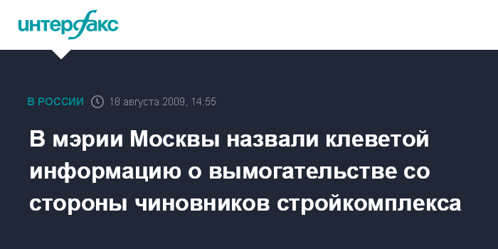 В мэрии Москвы назвали клеветой информацию о вымогательстве со стороны чиновников стройкомплекса