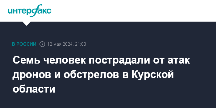 Москва. 12 мая. INTERFAX.RU - Несколько муниципалитетов Курской области атакованы с украинской стороны в воскресенье, есть пострадавшие, сообщила пресс-служба областного правительства.