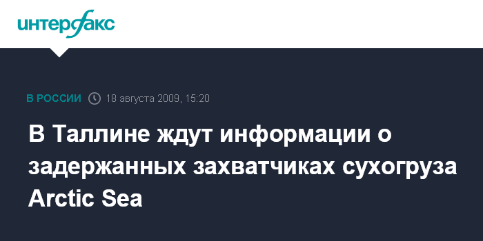 В Таллине ждут информации о задержанных захватчиках сухогруза Arctic Sea