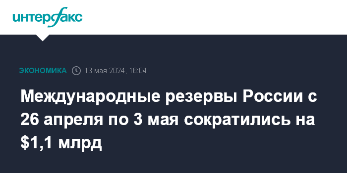 Международные резервы России с 26 апреля по 3 мая сократились на $1,1 млрд