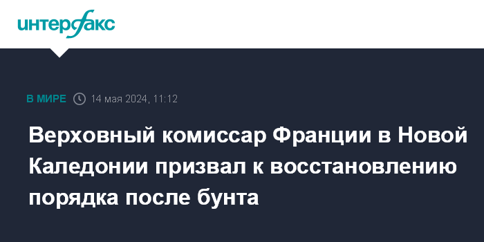 Верховный комиссар Франции в Новой Каледонии призвал к восстановлению порядка после бунта