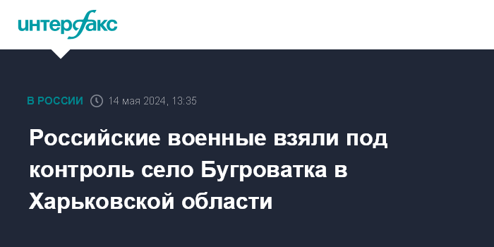 Москва. 14 мая. INTERFAX.RU - Российские войска взяли под контроль населённый пункт Бугроватка в Харьковской области, продвинулись в глубину обороны ВСУ, сообщило во вторник министерство обороны РФ.
