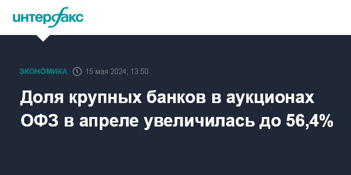 Доля крупных банков в аукционах ОФЗ в апреле увеличилась до 56,4%