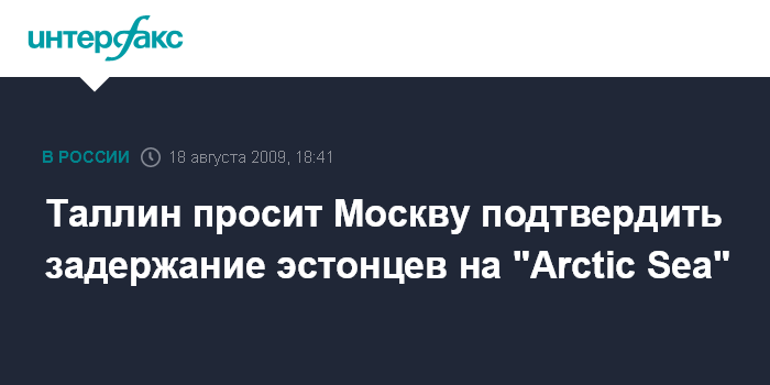 Таллин просит Москву подтвердить задержание эстонцев на "Arctic Sea"