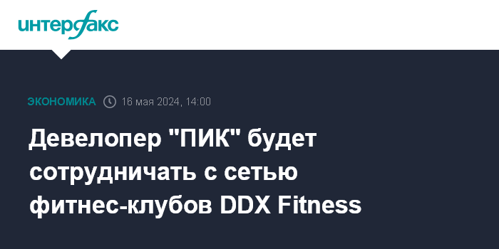 Москва. 16 мая. INTERFAX.RU - ГК "ПИК" будет сотрудничать с DDX Fitness в ряде своих проектов, рассказал "Интерфаксу" директор коммерческой недвижимости "ПИКа" Никита Бобарыкин.
