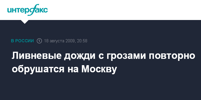 Ливневые дожди с грозами повторно обрушатся на Москву