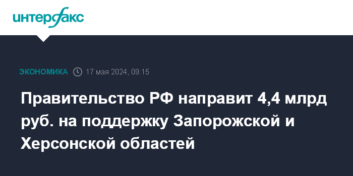 Правительство РФ направит 4,4 млрд руб. на поддержку Запорожской и Херсонской областей
