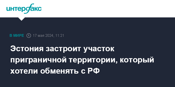 Москва. 17 мая. INTERFAX.RU - Правительство Эстонии приняло решение начать проектирование и строительство на участках земли, которые планировалось обменять с Россией, сообщил портал ERR.