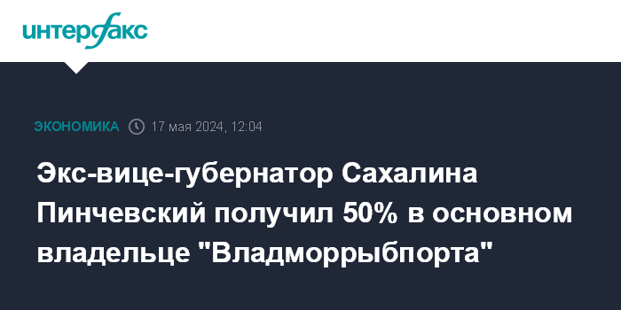 Экс-вице-губернатор Сахалина Пинчевский получил 50% в основном владельце "Владморрыбпорта"