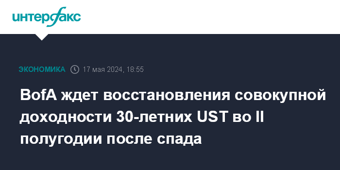 BofA ждет восстановления совокупной доходности 30-летних UST во II полугодии после спада