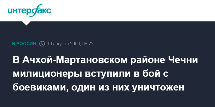 В Ачхой-Мартановском районе Чечни милиционеры вступили в бой с боевиками, один из них уничтожен