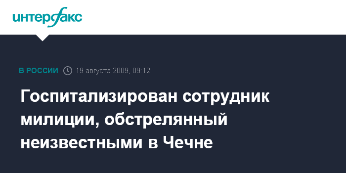 Госпитализирован сотрудник милиции, обстрелянный неизвестными в Чечне