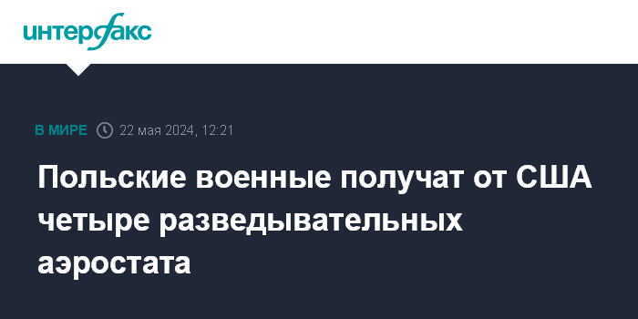 Москва. 22 мая. INTERFAX.RU - Министр национальной обороны Польши Владислав Косиняк-Камыш подписал контракт на поставку четырех разведывательных аэростатов из США для ведения разведки на границе Белоруссии и России, сообщило агентство PAP. Сумма контракта - $960 млн.