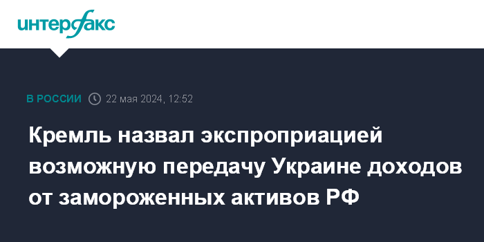 Москва. 22 мая. INTERFAX.RU - Передача Евросоюзом Украине доходов от замороженных активов России является ничем иным, как экспроприацией, заявил пресс-секретарь президента РФ Дмитрий Песков.