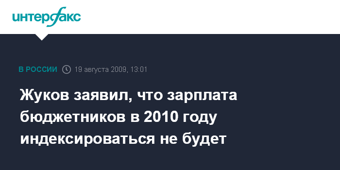 Жуков заявил, что зарплата бюджетников в 2010 году индексироваться не будет