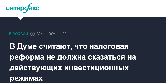В Думе считают, что налоговая реформа не должна сказаться на действующих инвестиционных режимах