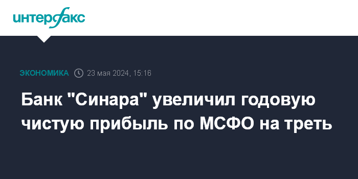 Москва. 23 мая. INTERFAX.RU - Чистая прибыль банка "Синара" по МСФО в 2023 году выросла на 32,9% и составила 3,08 млрд рублей, говорится в отчете банка.