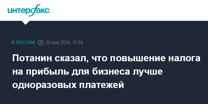 Потанин сказал, что повышение налога на прибыль для бизнеса лучше одноразовых платежей