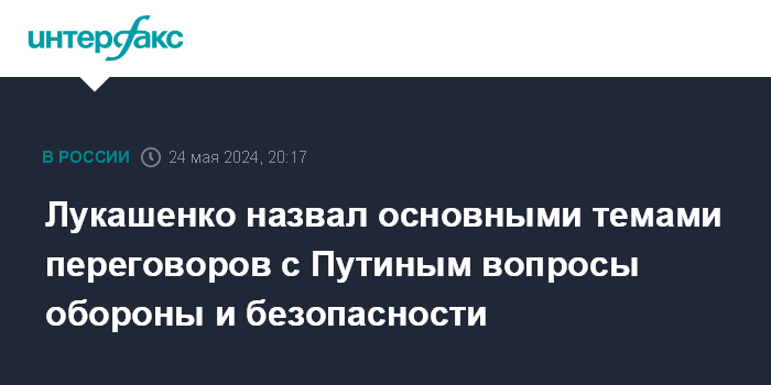 Москва. 24 мая. INTERFAX.RU - Темы обороны и безопасности являются основными на встречах президентов Белоруссии и России, заявил президент Белоруссии Александр Лукашенко.
