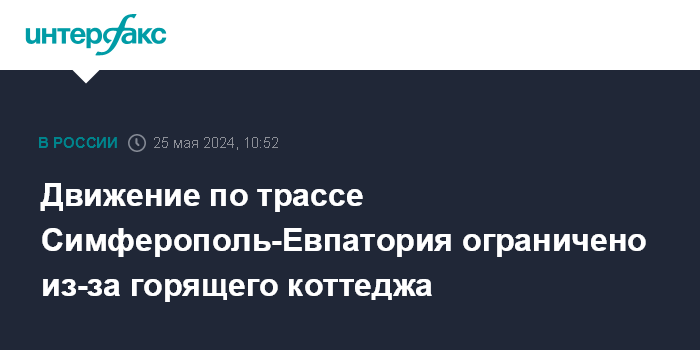 Москва. 25 мая. INTERFAX.RU - Движение машин по автодороге Симферополь-Евпатория ограничено в районе курортного села Прибрежное (Сакский район) из-за задымления от пожара в коттедже, сообщил в субботу министр транспорта Крыма Николай Лукашенко.