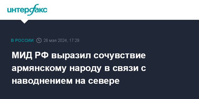 Москва. 26 мая. INTERFAX.RU - В МИД РФ заявили о сопереживании армянскому народу в связи с наводнением в северных регионах Армении.