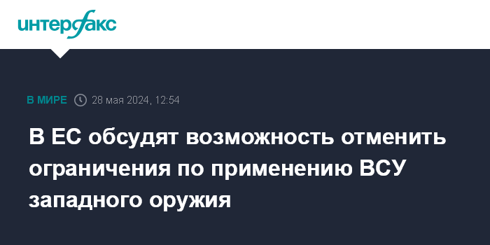 Москва. 28 мая. INTERFAX.RU - Министры обороны стран Евросоюза 28 мая обсудят возможность разрешить Украине использовать западное оружие по целям за пределами ее территории, заявил перед этой встречей глава дипломатии ЕС Жозеп Боррель.
