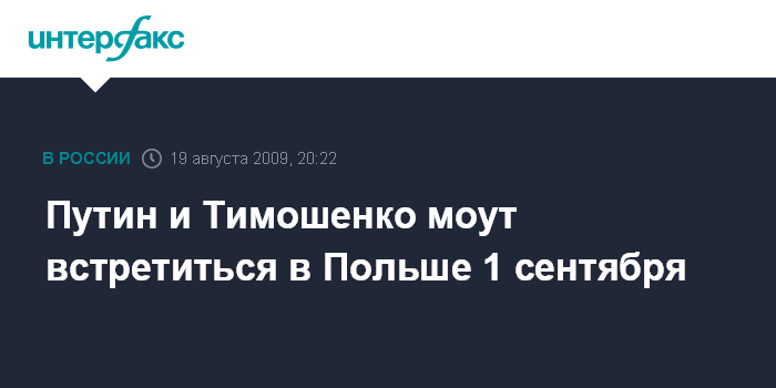 Путин и Тимошенко моут встретиться в Польше 1 сентября