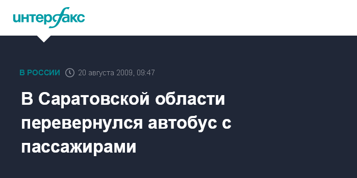 Москва. 20 августа. INTERFAX.RU - В городе Вольск Саратовской области утром в четверг перевернулся городской рейсовый автобус, в котором ехало около 20 человек.