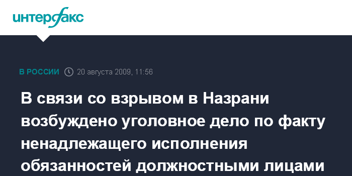 В связи со взрывом в Назрани возбуждено уголовное дело по факту ненадлежащего исполнения обязанностей должностными лицами МВД Ингушетии
